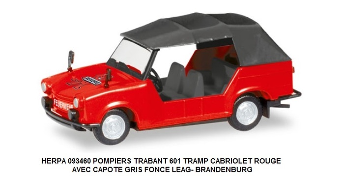 POMPIERS TRABANT 601 TRAMP CABRIOLET ROUGE AVEC CAPOTE GRIS FONCÉ LEAG-BRANDENBURG