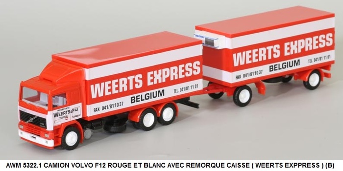 CAMION VOLVO F12 ROUGE ET BLANC AVEC REMORQUE CAISSE ( WEERTS EXPPRESS ) (B)