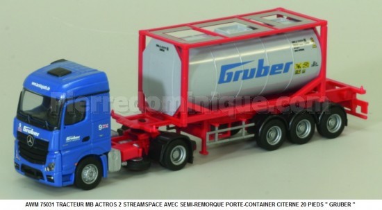TRACTEUR MB ACTROS 2 STREAMSPACE AVEC SEMI-REMORQUE PORTE-CONTAINER CITERNE 20 PIEDS '' GRUBER ''
