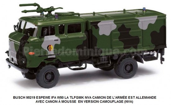 ESPEWE IFA W50 LA TLFGMK NVA CAMION DE L'ARMÉE EST ALLEMANDE AVEC CANON À MOUSSE EN VERSION CAMOUFLAGE (NVA) (RDA)