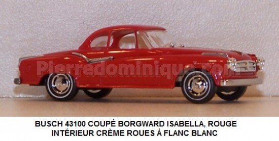 COUPÉ BORGWARD ISABELLA, ROUGE, INTÉRIEUR CRÈME ROUES À FLANC BLANC