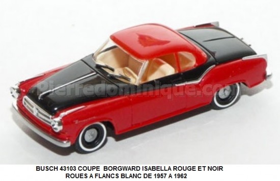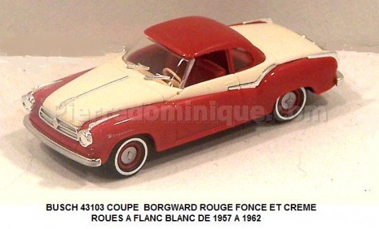 COUPE BORGWARD ISABELLA ROUGE FONCE ET CREME ROUES A FLANC BLANC DE 1957 A 1962