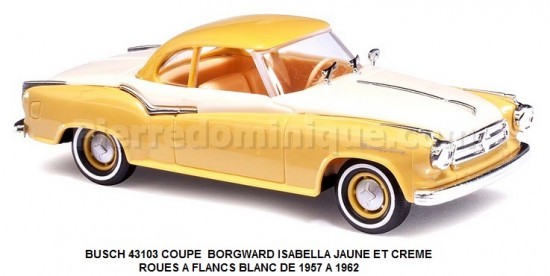 COUPE BORGWARD ISABELLA JAUNE ET CREME ROUES A FLANC BLANC DE 1957 A 1962