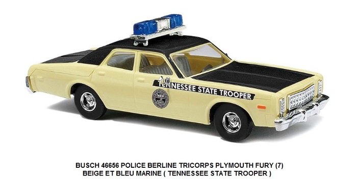 POLICE BERLINE TRICORPS PLYMOUTH FURY (7) BEIGE ET BLEU MARINE ( TENNESSEE STATE TROOPER )