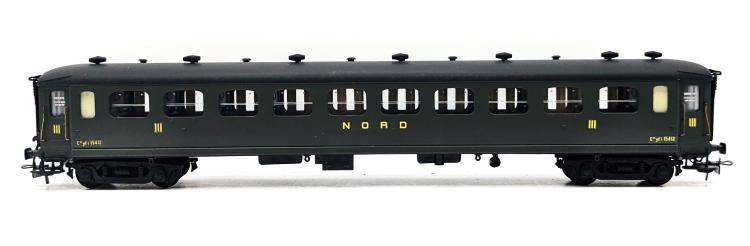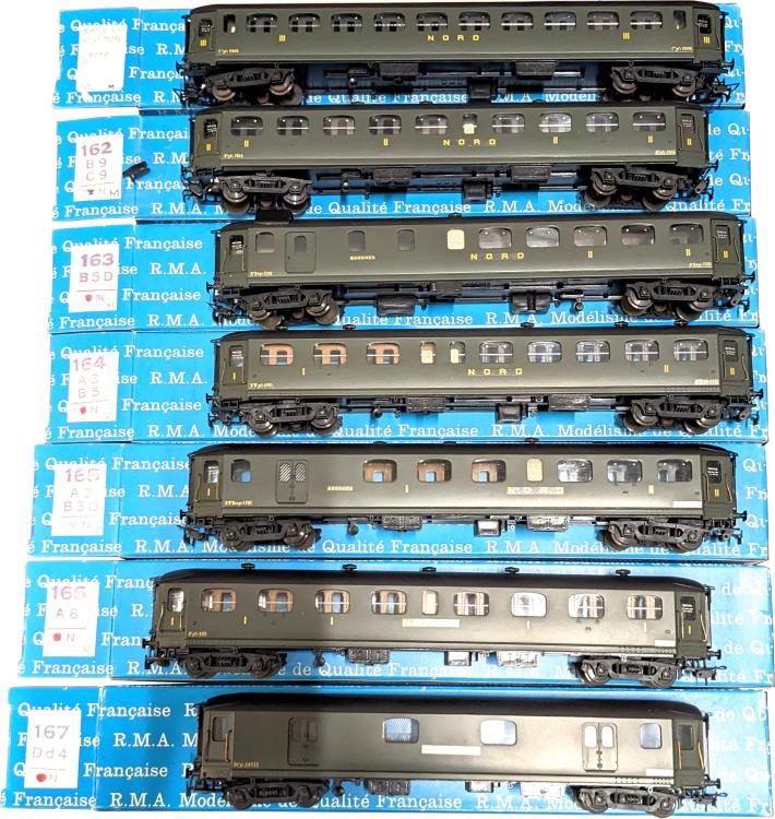 RAME COMPLETE 7 ELEMENTS NORD RAPIDE - VOITURE VOYAGEURS + FOURGON BAGAGE ( MONTE )