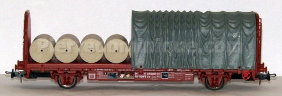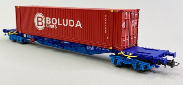 WAGON PLATE FORME A BOGIE MMQC CHARGE AVEC CONTENEUR FRIGORIFIQUE PESCANOVA