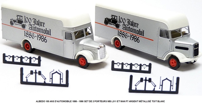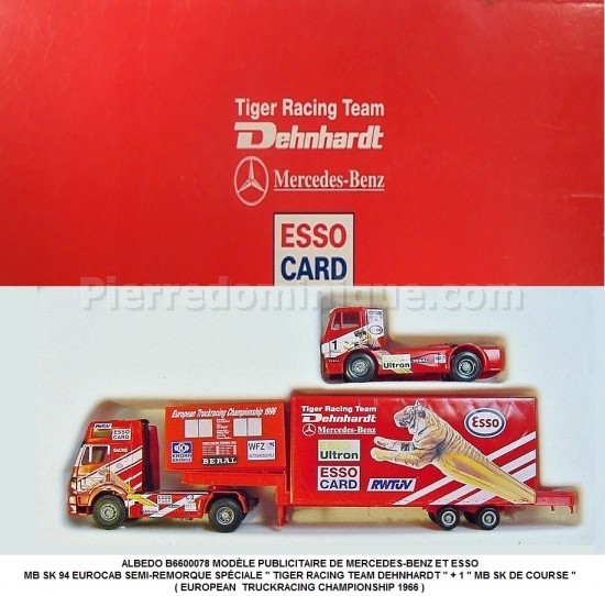 ALBEDO B66002078 MODÈLE PUBLICITAIRE DE MERCEDES-BENZ ET ESSO MB SK 94 EUROCAB SEMI-REMORQUE SPÉCIALE " TIGER RACING TEAM DEHNHARDT " + 1 " MB SK DE COURSE " ( EUROPEAN TRUCKRACING CHAMPIONSHIP 1966 )