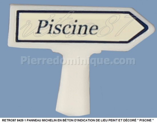 1 PANNEAU MICHELIN EN BÉTON D'INDICATION DE LIEU PEINT ET DÉCORÉ quot; PISCINE quot;