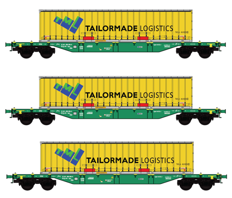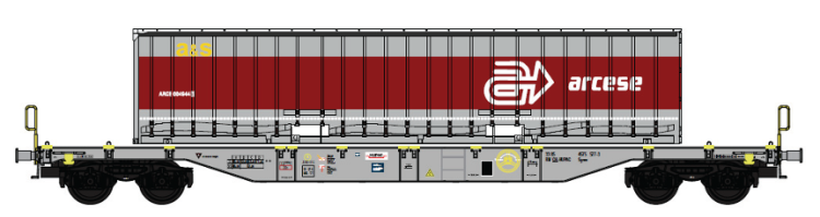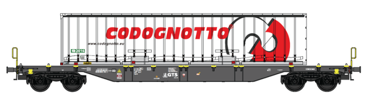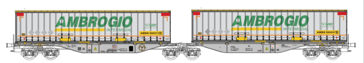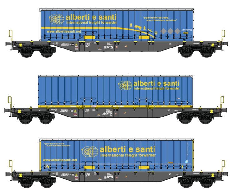 SET DE 3 WAGONS PORTE CONTENEURS + CONTENEURS ALBERTI E SANTI GTS (A RESERVER)
