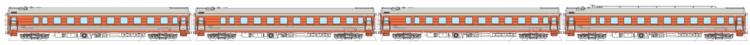RAME DE 4 VOITURES VOYAGEURS A BOGIES CHINOIS NOUVELLE COULEUR GRIS ORANGE - SAI - (A RESERVER)